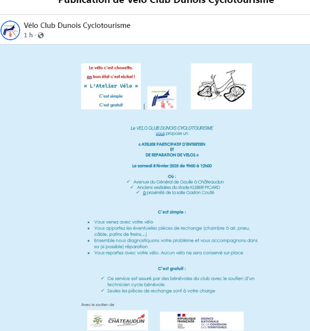 Atelier participatif du vélo club dunois : C’est reparti pour une nouvelle année !!!.