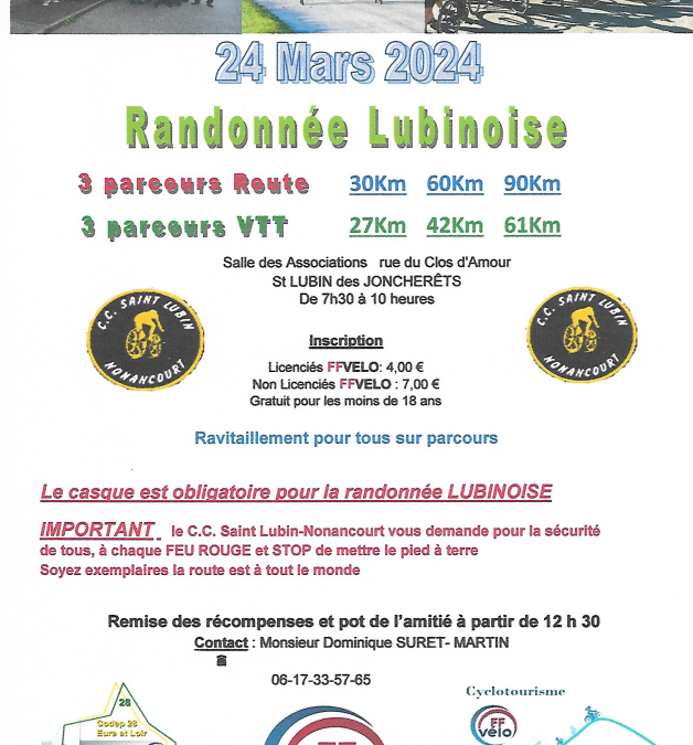 Le dimanche 24 mars La LUBINOISE ouvrira la saison 2024 des organisations de randonnées départementales