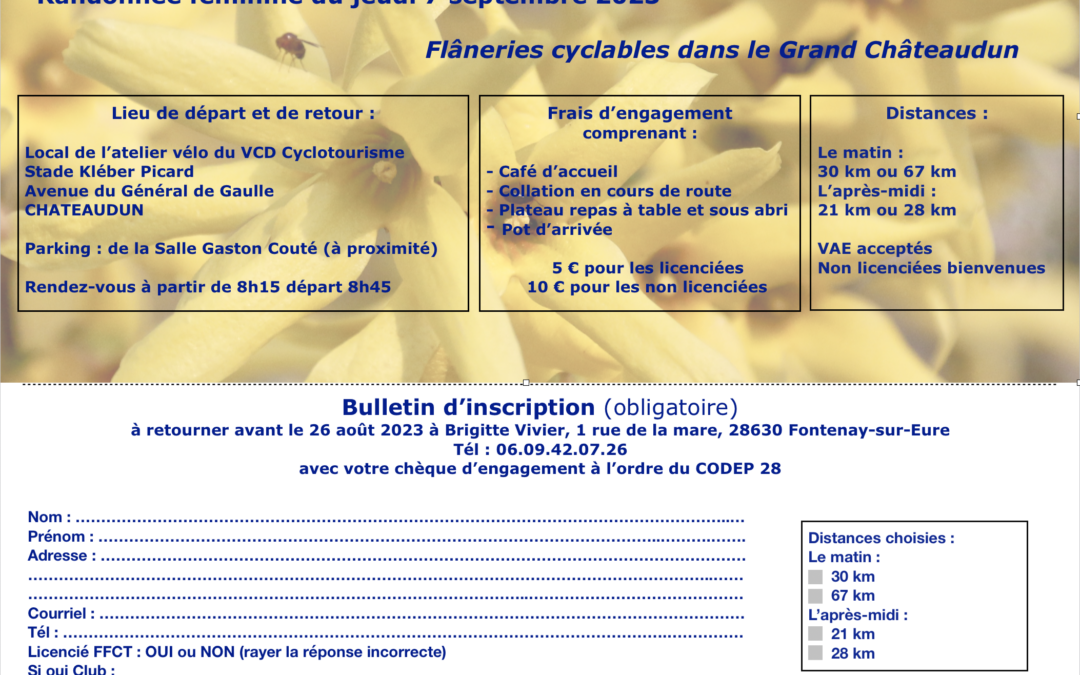 C’est le V.C.Dunois qui organisera la seconde randonnée Féminine 2023.